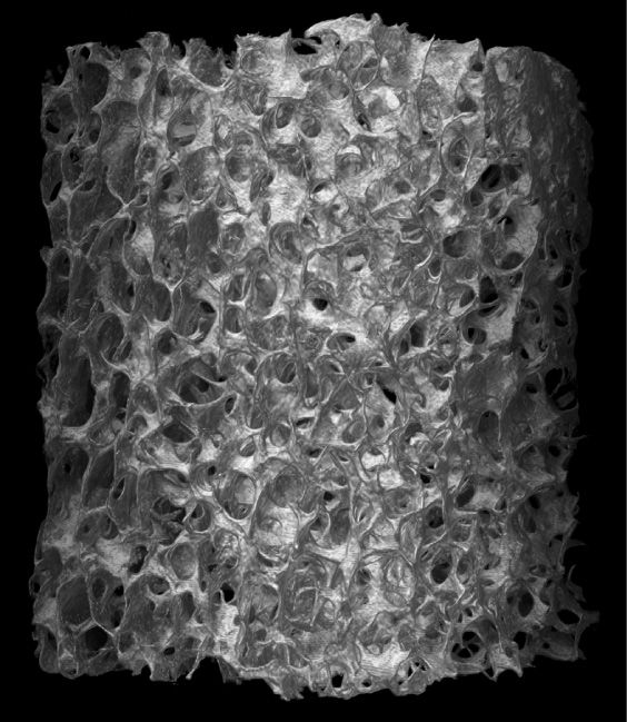 Matrix OI® is a Stem Cell Containment® human scaffold that is processed using CellRight's proprietary BioRinse™ technology. All Matrix OI® products are verified for osteoinductivity post-sterilization prior to release for distribution. In-vivo test results demonstrate all 5 bone-forming elements present (chondrocytes, osteocytes, bone marrow cells, cartilage, and new bone) in our implants. The product's revolutionary design uses Geometric Compression™ that minimizes the use of fixation devices that support graft placement. The product's pliable handling characteristics facilitate minimally invasive patient and surgeon preferred surgical procedures. Micro-CT scans of this human scaffold exhibit a well-interconnected matrix that preserves the infrastructure of the graft to maximize intra-cellular growth for bone repair.