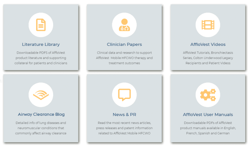 Learn more about AffloVest® Mobile High Frequencey Chest Wall Oscillation (HFCWO) Vest Therapy, airway clearance techniques, and treatment options for lung diseases such as Cystic Fibrosis and Bronchiectasis