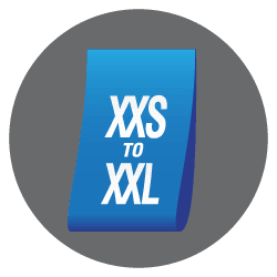 The AffloVest comes in 7 different sizes, to fit children and adults from XXS to XXL, 18 – 65+ inches in chest circumference.