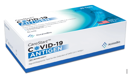CareStart Antigen test by Access Bio- This is a 100% American made test with the FDA EUA number found at the FDA link below- https://accessbiodiagnostics.net/wp-content/uploads/2020/10/EUA202625_ABI-CareStart-COVID-19-Antigen-EUA-LOA-10082020-FINAL.pdf The lab manufacturing the test is Access Bio. https://accessbiodiagnostics.net/