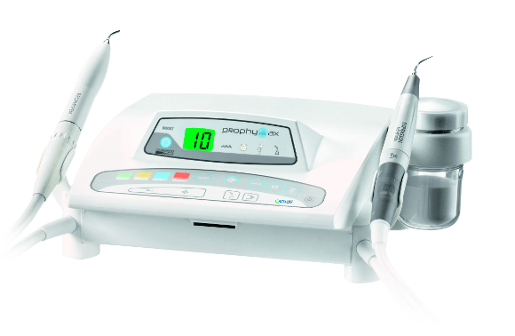 The Prophy Max is a multi-clinic ultrasound generator combined with an air polisher. Its new multi-function footswitch can control the main functions, leaving the dentist's hands free to concentrate on the treatment. The new Suprasson® Newtron scaling handpiece is fully autoclavable and can easily be dismantled, providing great access to the transducer. The spray is simply adjusted with a ring situated on the cord. The SP Newtron™ control module recognizes the tip frequency and automatically adapts the current in real time to the resistance encountered. The irrigation kit (optional) includes 2 independent 450 ml sterilizable containers and a new cord with a built-in external irrigation line.
