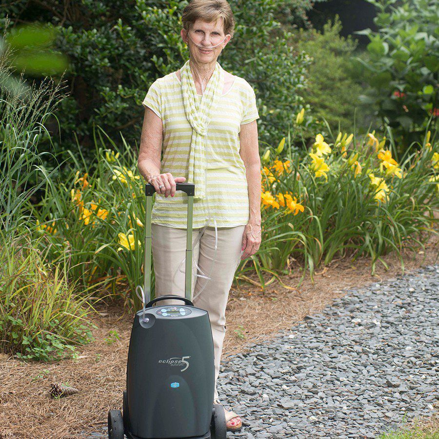 The Eclipse 5 is only 18.4 lbs with the battery inside, and is 19.3 inches tall, 12.3 inches wide and 7.1 inches deep. Even though it's one of the heavier portable oxygen concentrators on the market, which it needs the extra size to house the additional settings and features, it is easy to move about with the help of the mobile cart that comes with it.